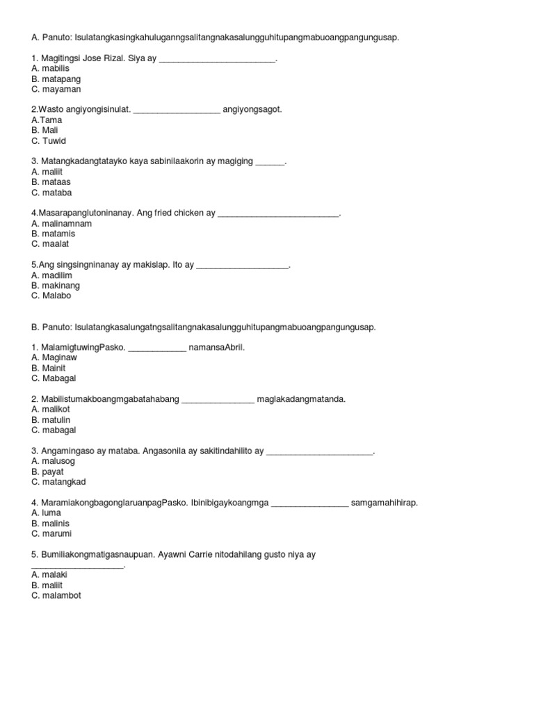Maralita mayaman mahirap 9. Pagsasanay sa Filipino Pangalan _____ Petsa _____ Marka _____ Mga Salitang Magkasingkahulugan at Magkasalungat Mga Sagot. BAZARPAGSUSULIT SA FILIPINO 7.