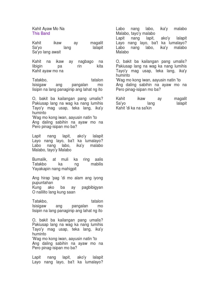 Improved the textview for the band name. Ang daling sabihin na ayaw mo na. Browse for Kahit Ayaw Mo Na song lyrics by entered search phrase.